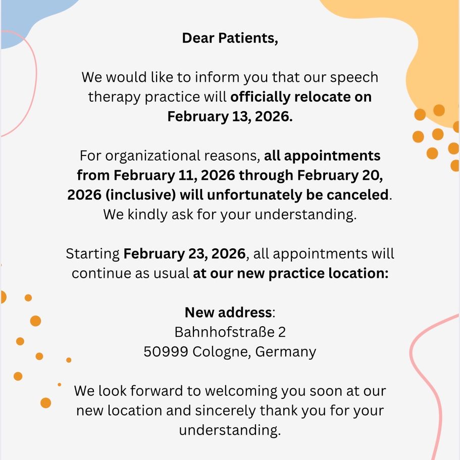 wir freuen uns, Ihnen mitteilen zu dürfen, dass unsere Praxis für Logopädie voraussichtlich im Februar 2026 nach Köln-Sürth umziehen wird!